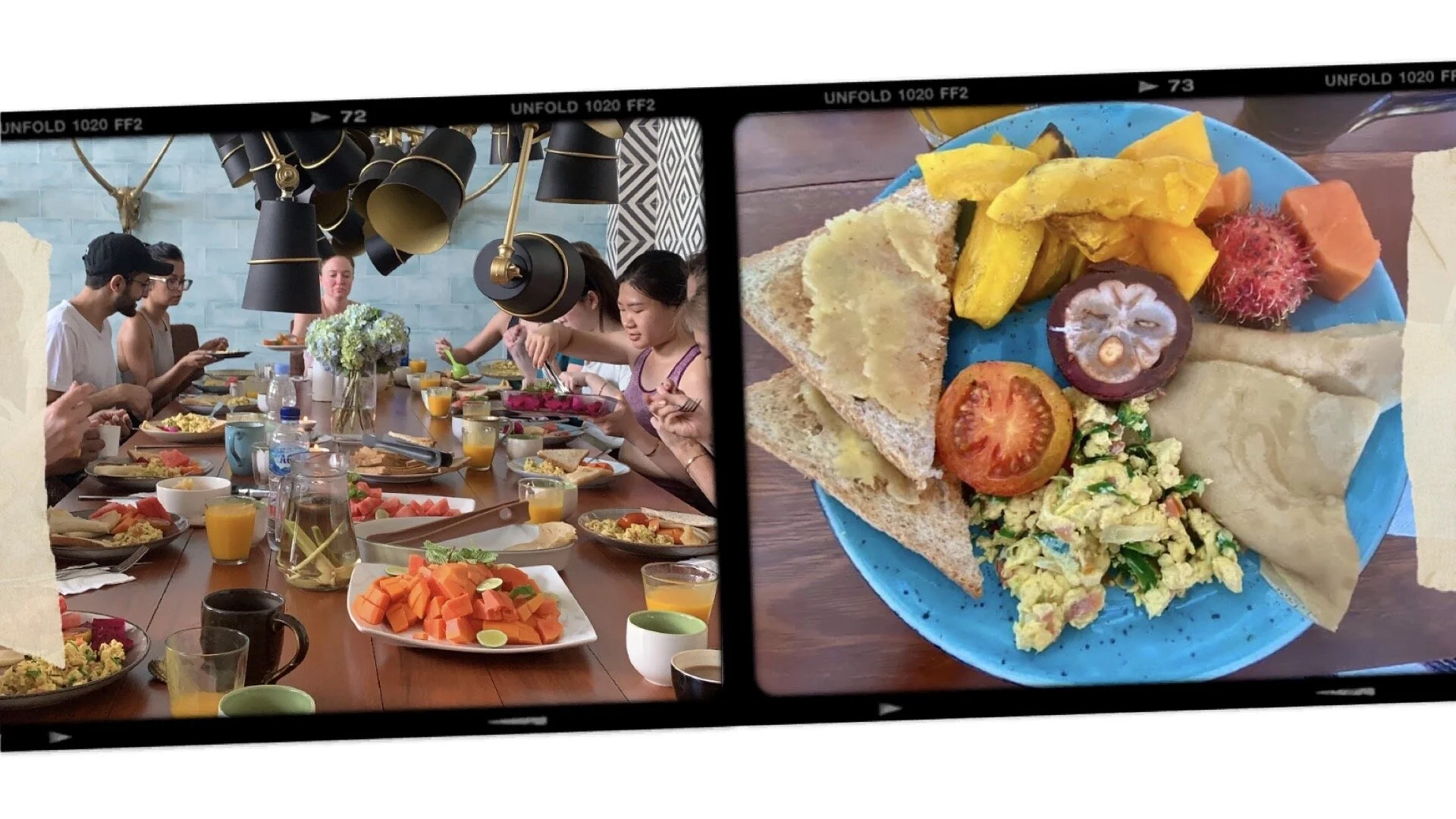 After sweating it out, we quickly showered and enjoyed a big, hearty breakfast of tropical fruit, scrambled eggs, roasted tomatoes, balinese styled pancakes, toast with apricot jam, freshly-squeezed mango juice and ginger-lemongrass tea. It was absolutely divine!
